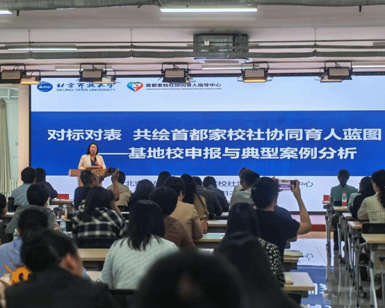 9月24日下午,“北京市家校社协同育人实践基地校交流培训会”在北京开放大学北校区举行。本次会议旨在深入推进家校社协同育人工作,分享基地校建设优秀经验。来自全市各区教委、中小学的百余位协同育人工作负责人、主管副校长及教师现场参会,近110人线上直播参会。北京市教委基础教育一处副处长张代龙,北京开放大学副校长张晓红出席活动,培训会由培训学院副院长魏学智主持。