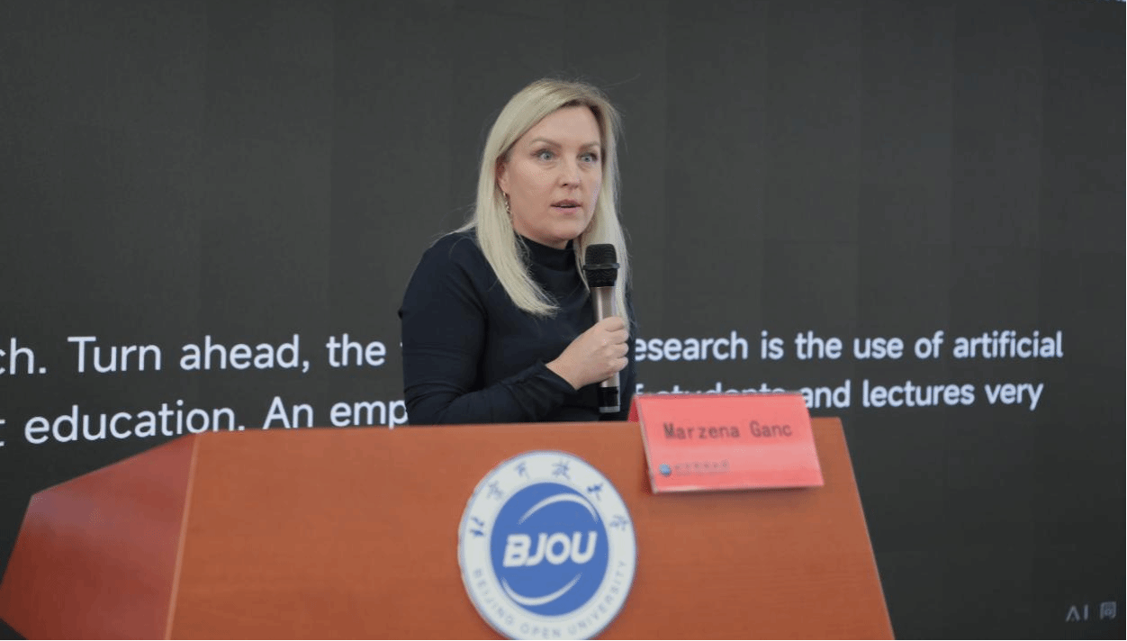 华沙生命科学大学玛尔泽娜・甘茨博士(Marzena Ganc)分享了波兰高等教育AI应用现状,学生群体呈“技术敏感型”特征,教师群体则表现为“风险规避型”倾向,她提出“分层赋能机制”解决方案——为学生搭建AI创新实验室,为教师开设算法透明度工作坊。
