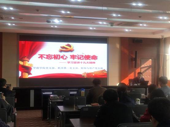 为落实学校党委精神,11月1日,学校纪委书记姜孔桥深入学前教育学院党支部、机关第二党支部、财务与资产管理党支部,宣讲党的十九大精神,并与学前教育学院支部党员一起深入学习十九大报告原文和... -