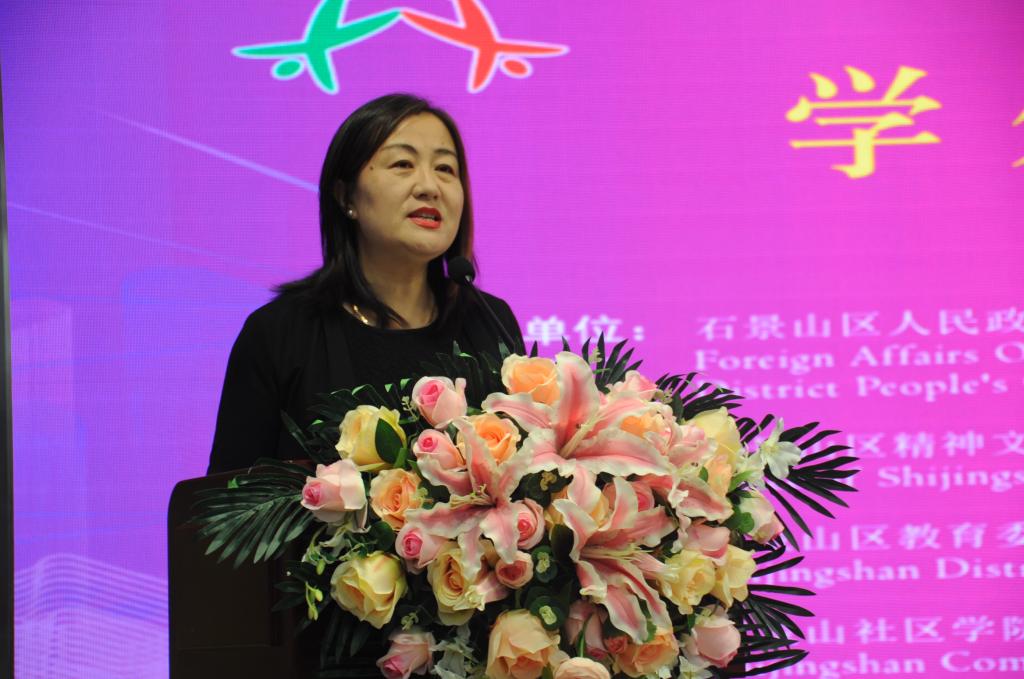 10月19日,“学外语 促创城 迎冬奥”2019年石景山区第十七届市民讲外语活动周启动仪式暨石景山区外语游园会在石景山社区学院举办。本次活动由石景山区人民政府外事办公室、石景山区精神文明建设委员会办公室、石景山区教育委员会、石景山社区学院共同主办。区外事办主任斯琴、区委宣传部副部长董聪慧、北京第二外国语学院教授刘永厚、广宁街道冬奥社区轮值社区长、短道速滑世界冠军赵楠楠,区教委副调研员管娜、社区学院院长杨文霞以及各街道办事处主管领导参加了活动。来自全区的中小学生及家长、石景山区“冬奥英语大讲堂”学员以及社区英语学习社团代表近千人参加活动,为石景山终身学习助力加油。