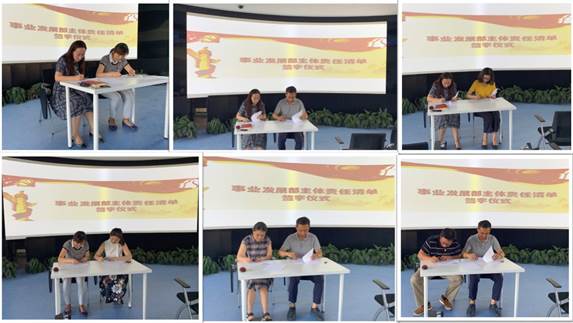 最后,在热烈的学习气氛当中,启动了事业发展部主体责任清单签字仪式。业务部党政负责人与副主任、各中心负责人及学院副院长分别签订了主体责任清单。这标志着事业发展部在“强化政治建设首位意识、夯实全面从严治党责任”工作中迈出了重要一步,全体党员和教职工见证了这一时刻。