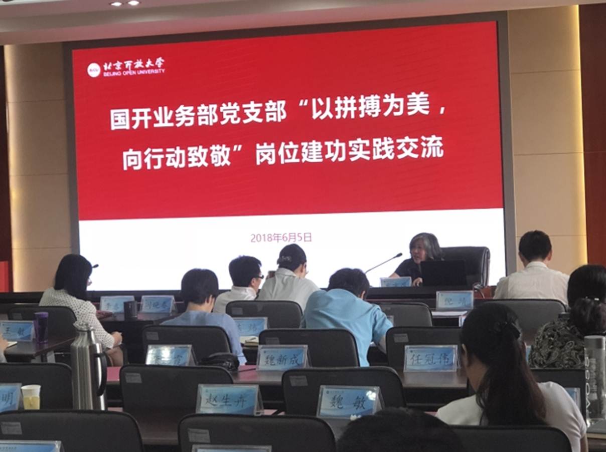 本次岗位建功实践交流活动,是国开业务部党支部“以拼搏为美,向行动致敬”岗位建功主题党日活动的最后一个部分;通过前期到红色基地参观学习和重温入党誓词,以及支委联系青年教师谈心谈话等系列活动的开展,国开业务部全体党员从实处深入学习贯彻习近平新时代中国特色社会主义思想,对在学校转型发展中进一步发挥先锋模范带头作用有了更深刻的认识。