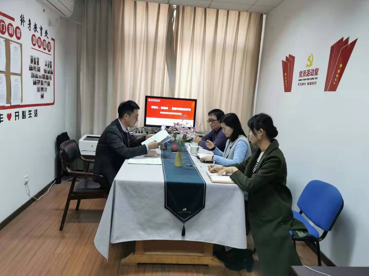 国兆亮书记结合自己在实际工作中“守初心、担使命”的体会和感悟,联系具体问题,强调党员要立足工作岗位,一切以学习者的学习需求为出发点和落脚点,锐意进取、开拓创新,不断提高业务能力,做好每件事,攻克每一个难关。通过学习和讨论,党员们进一步深化了对“初心和使命”的理解,激发了“守初心、担使命”的内在动力,表达了“守初心、担使命”的决心,齐心协力、开拓创新,为学校的改革发展贡献自己的力量。
