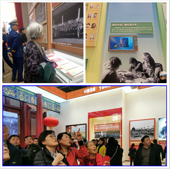 展厅的实物、主题墙、体验项目等都唤起老同志久违的记忆,大家边参观边感慨,不停在寻找自己关注的关键年事前驻足浏览,相互聊起其间的家事、国事。作为新中国成立70周年的亲历者和见证者,祖国巨大的变化,让他们感慨万千,激动不已。特别是看到在70周年成就展中有中央广播电视大学和各省市广播电视大学成立的版块,老同志激动地表示:广播电视大学是成人教育的表率,能在此占有一席之地,作为开大(电大)人实感荣幸之至,这是是国家对广播电视大学作用的肯定,值得庆贺。好多老同志都在此特别拍照留念。