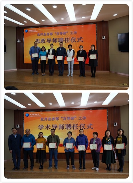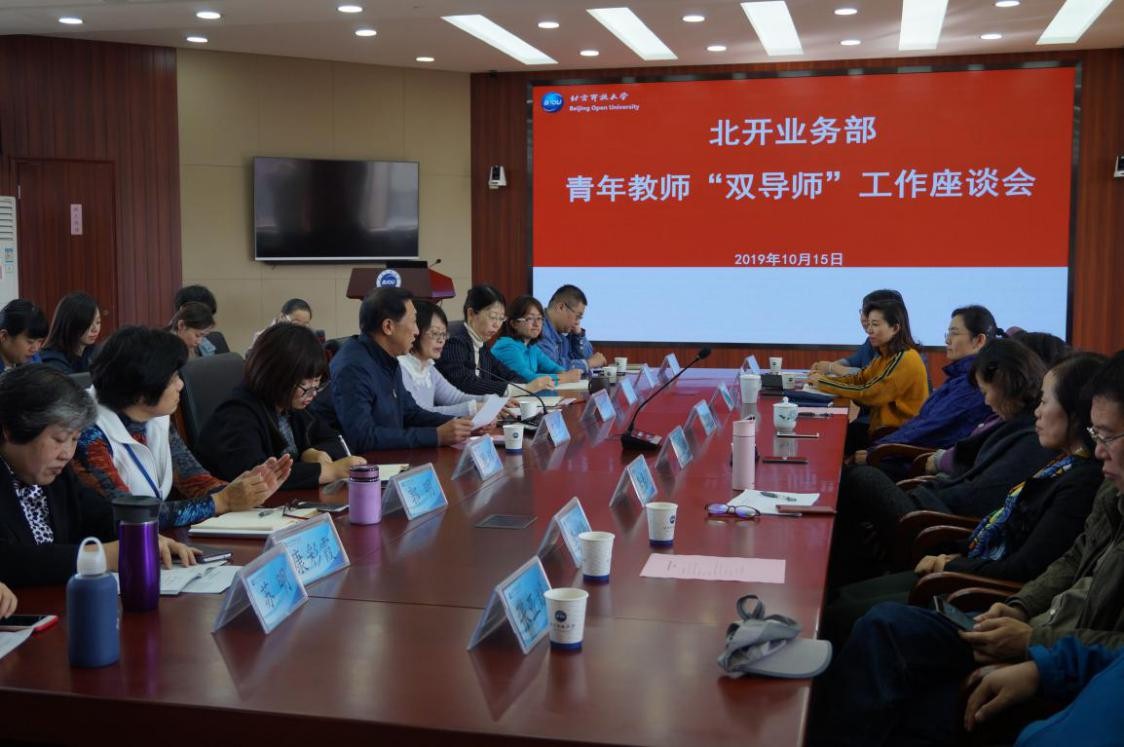 为扎实有效地开展“不忘初心、牢记使命”主题教育,落实“以教师为中心”的工作思路,培养建设一支政治立场坚定的开放大学有理想信念、有道德情操,有扎实学识、有仁爱之心的“四有好老师”,北开业务部开展“青年教师双导师制”试点工作。 10月15日,业务部举办思政导师和学术导师聘任仪式,同时召开青年教师“双导师”工作座谈会,副校长蔡大鹏出席会议,会议由北开业务部主任张琳琳主持。