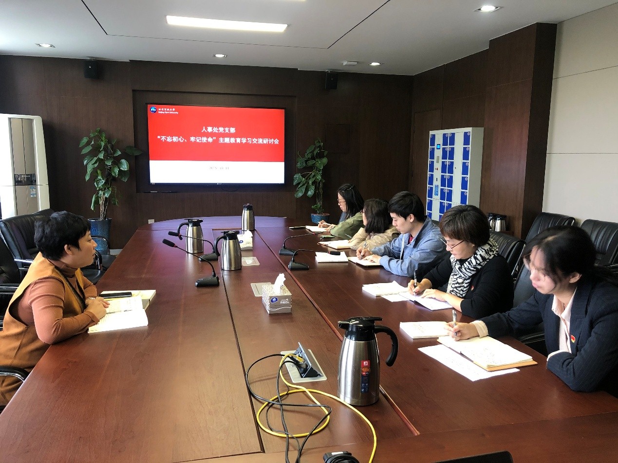 10月12日上午,人事处党支部在4号楼405会议室召开了“不忘初心、牢记使命”主题教育学习交流研讨会。人事处全体党员参会,会议由党支部书记宋平平主持。