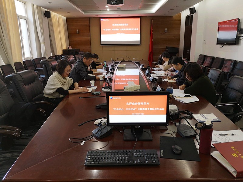 按照学校统一部署和安排,北开业务部党总支于12月10日下午召开“不忘初心、牢记使命”主题教育专题民主生活会。党总支班子全体成员参加,学校党委副书记、主题教育办领导小组成员邵长生到会指导,业务部主任张琳琳列席会议。会议由北开业务部党总支书记王秀凤主持。