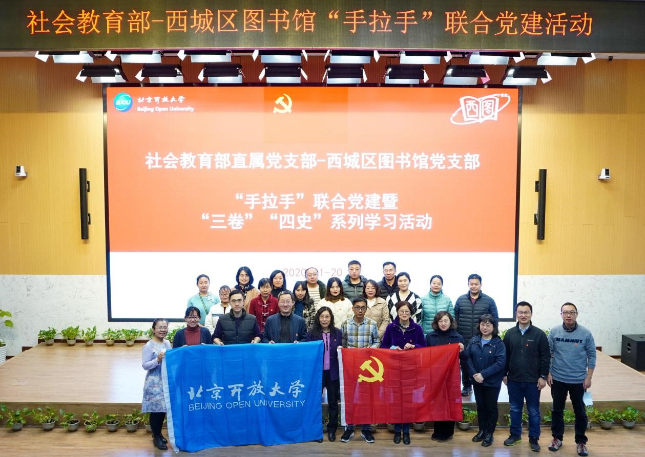 11月20日,我校社会教育部与西城图书馆在西直门校区多功能报告厅,组织开展党建“手拉手”暨学习“三卷”“四史”主题活动。参加本次活动的包括社会教育部直属党支部全体党员和西城区图书馆党支部党员。
